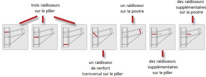L'assemblage du cadre poteau-poutre peut au choix être créé avec ou sans raidisseurs. Les raidisseurs possibles sont :