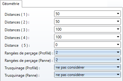 Si les trusquinages de la panne ou de la poutre (dans le cas des profilés métalliques : la distance des rangées de rivets dans l'âme ou l'aile par rapport à des arêtes particulières de la coupe transversale) doivent être pris en compte, sélectionnez cette option dans les listes de choix correspondantes.