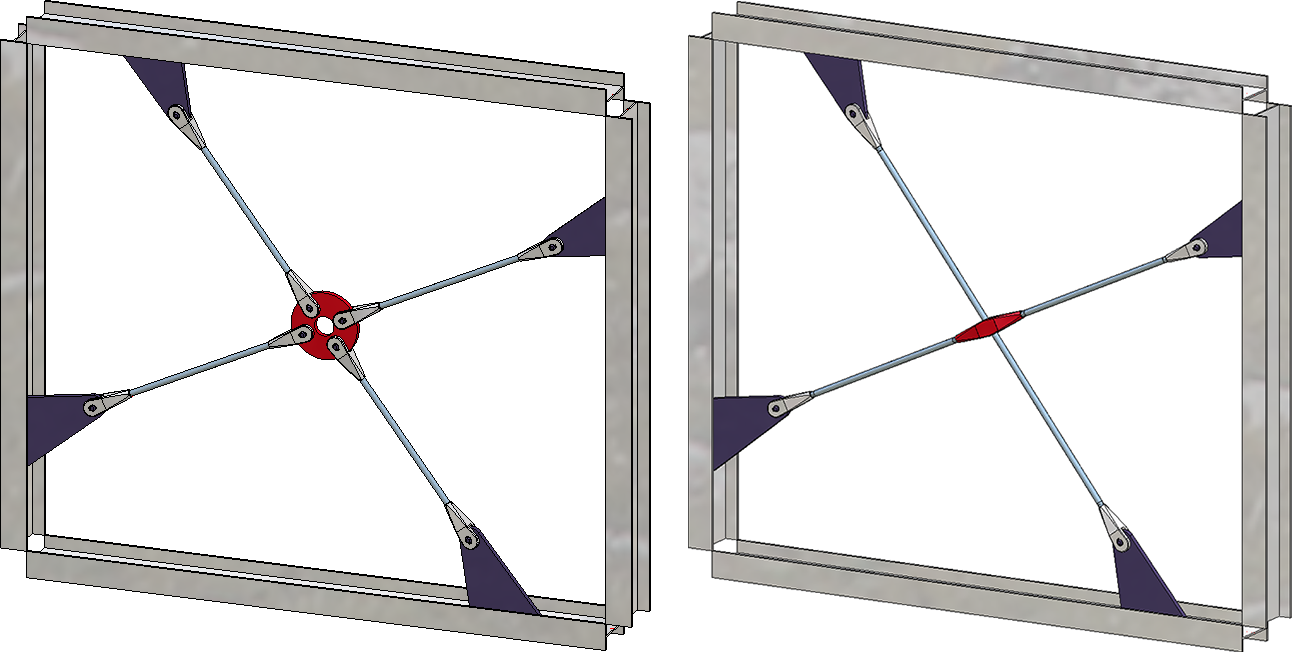 Contreventement en croix Besista : à gauche avec disque circulaire, à droite avec ancrage croisé