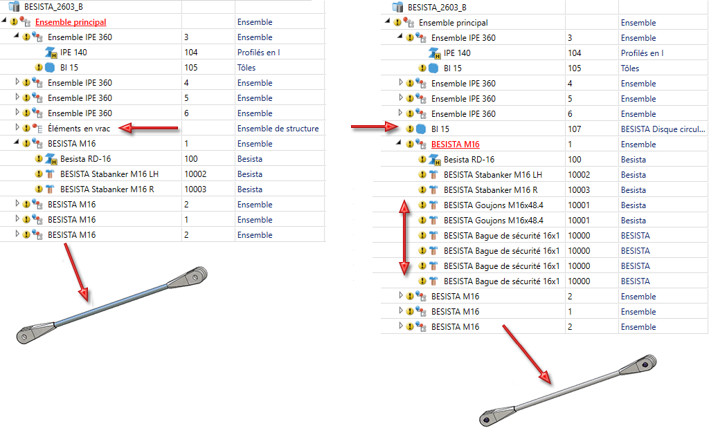 directement dans les catalogues de pièces standardisées correspondants. Les systèmes de bâton-pilote se trouvent dans le catalogue Charpente métallique > Gestionnaire général > Système de barres Besista, les goussets sous Produits semi-finis > Tôles.