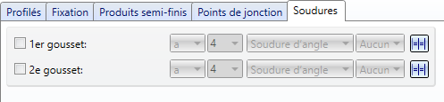 Dans cet onglet, vous spécifiez quelles soudures devront être créées sur les goussets.