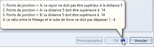 Quand la fenêtre est ouverte, vous pouvez par un clic sur le bouton Prévisualisation, avoir un aperçu de la jonction de tube de force créée à partir des paramètres actuels. Vous pouvez alors zoomer la scène. |