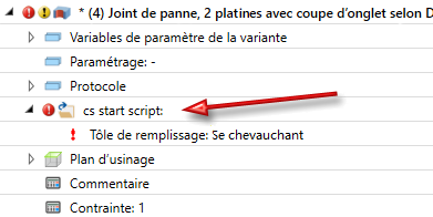 Si la grille de perçage est trop étroite ne permettant ainsi pas l'insertion des tôles de remplissage, le platine ne sera alors pas créée. Un historique de Feature sera quand même créé.