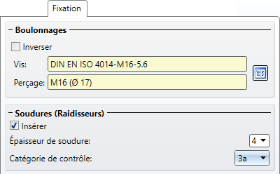 Les raidisseurs seront soudés à la panne ou à la poutre. Si vous souhaitez insérer les soudures, cochez alors la case correspondante et déterminez l'épaisseur de la soudure.