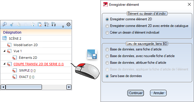 Cliquez dans l'ICN avec le bouton droit de la souris sur l'élément principal 2D et sélectionnez la fonction Enregistrer l'élément