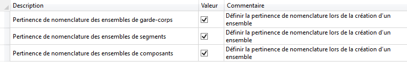 Si vous décochez ici la pertinence de nomenclature pour les ensembles de composants, aucun élément principal d'ensemble ne sera alors défini par le configurateur de garde-corps.
