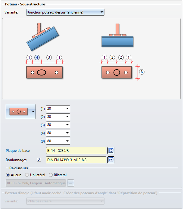 La longueur de calcul sera déterminée ici par le nombre de poteaux répartis par rapport à l'axe. La valeur dans le champ Distance, ainsi que la distance à la transition (cote 5), ne sera ici pas prise en considération.