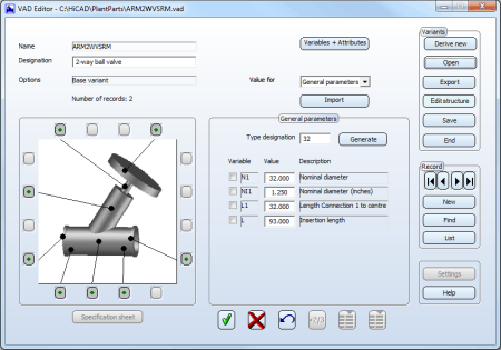 Depending on the variant type, HiCAD will display the appropriate user interface for the variant.