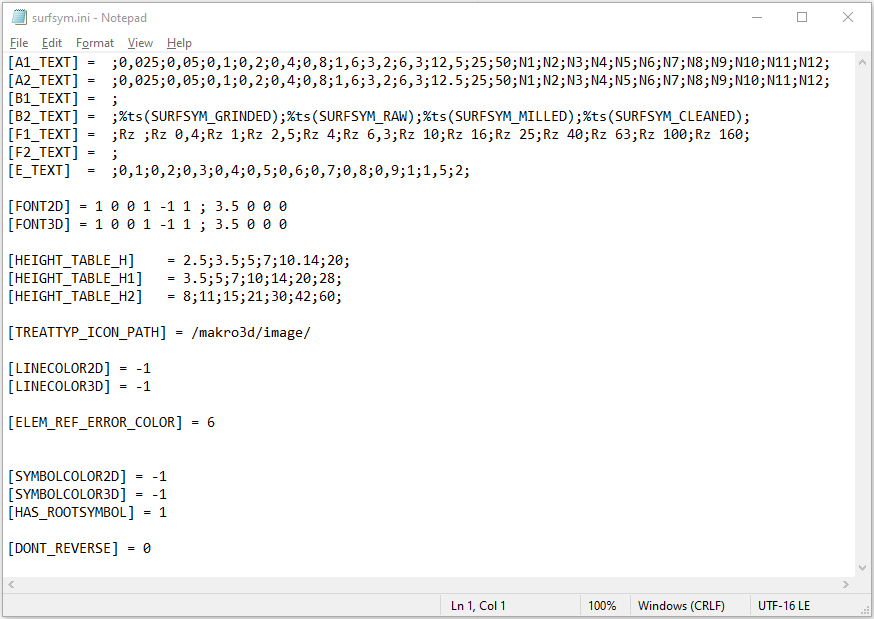 In connection with the surface characters the system file surfsym.ini in the HiCAD SYS directory plays an important role.