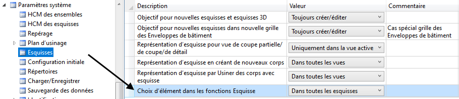 Si le paramètre Uniquement dans esquisse active est sélectionné, vous ne pourrez alors sélectionner, dans le cadre de ces fonctions, qu'une ligne qui se trouve dans l'esquisse active.