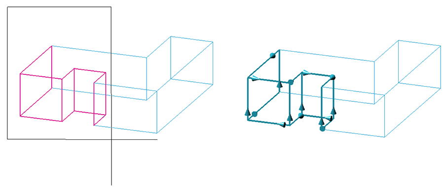 Sont sélectionnées toutes les arêtes qui se trouvent à l'intérieur d'un rectangle. Pour dessiner le rectangle, maintenez le bouton gauche de la souris.