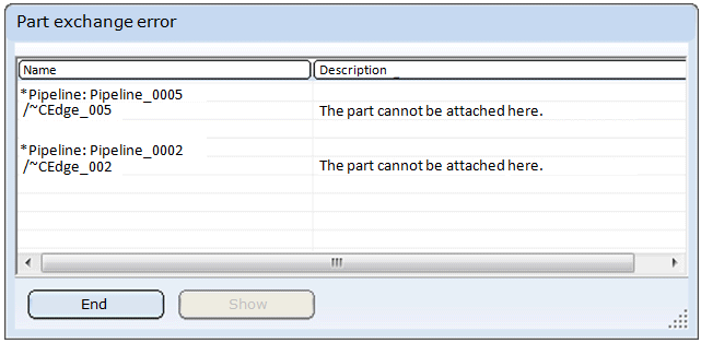 If the exchange was unsuccessful for some parts, HiCAD will display an error log showing you the locations where the error occurred. The following cases are possible: