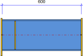 Si l'écart intérieur entre les poteaux est coté comme cote individuelle, l'épaisseur du poteau ne sera alors pas prise en compte. La cotation se fait dans tous les champs du segment du garde-corps. Si les cotes de cette règle sont identiques dans tous les champs, seule la cote du premier champ sera alors représentée.