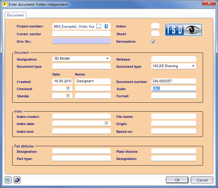 1. The Part attributes mask will be displayed. Here you define the attribute for the main assembly of the drawing.