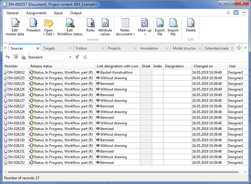 Now you can view the current links and the product structure in the HELiOS Desktop - for instance, in the Project Explorer, by opening the document with the 3-D model. You can then see which parts are itemized, and whether a drawing already exists for these parts. In the image below, no drawings exist yet.