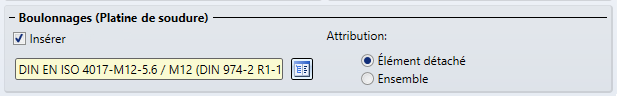 Dans l'onglet Fixation, un nouveau type de fixation est désormais disponible sous Boulonnages (Platine de soudure).