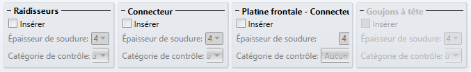 En cochant la case Créer, vous pouvez alors spécifier dans l'onglet Soudures si des soudures doivent être insérées entre la platine frontale et le connecteur.