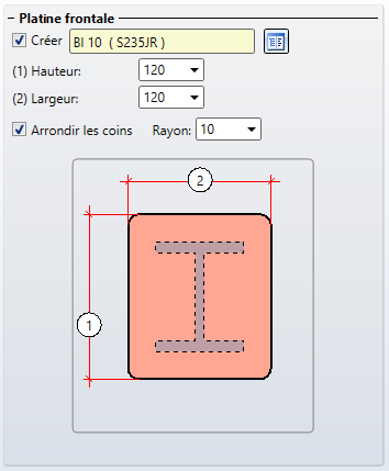 Le connecteur peut désormais être muni d'une platine frontale qui peut aussi être arrondie. Pour ce faire, l'onglet Connecteur a été complété en conséquence.