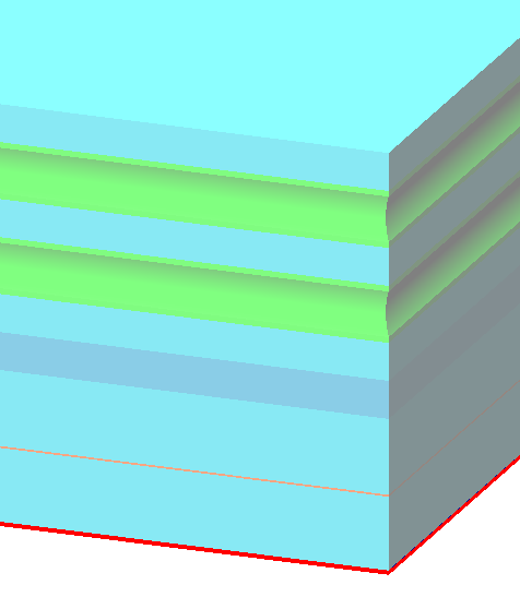 Les couleurs de l'aperçu dans lesquelles les différentes couches d'un verre feuilleté sont affichées sur la scène ont été harmonisées. Ainsi, les vitres de verre sont désormais toujours affichées en bleu. Si plusieurs vitres se suivent directement, une nuance de bleu légèrement différente est utilisée en alternance. Les feuilles et les intercalaires sont affichés en vert. Si une couche est sélectionnée dans la boîte de dialogue Verre laminé, elle est mise en évidence en bleu foncé.
