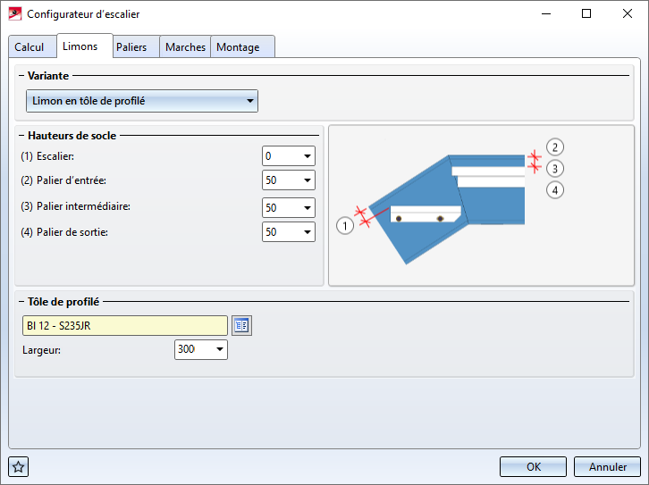 À partir du SP1, vous disposez dans le configurateur d'escalier également des tôles de profilé comme limons.