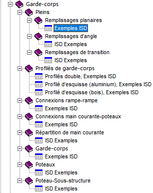 À la livraison de HiCAD, vous recevez des exemples de variantes de la part de ISD pour les différents composants. Vous pouvez les trouver dans le catalogue Normes d'usine > Garde-corps.