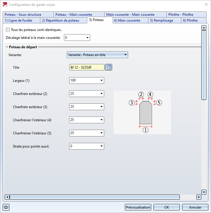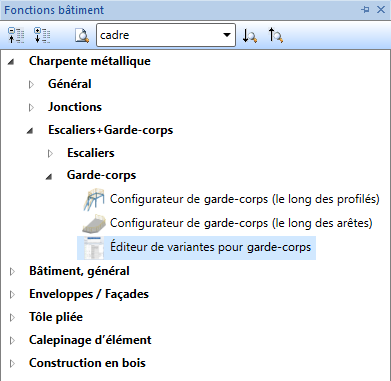 Éditeur pour variantes de garde-corpsEscaliers et garde-corps (CM 3D)Fonctions de la Charpente métallique