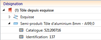 La variable définie peut maintenant être utilisée dans le Feature. Par exemple, si son élément de garde-corps contient un produit semi-fini, une entrée du type suivant peut être trouvée dans l'historique de Feature :