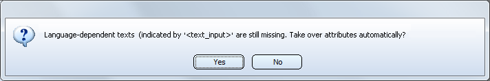 When you change attribute assignments via the A button and then click OK without having adjusted the attribute in all languages, the following message will be displayed: