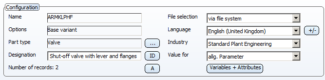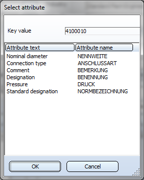 For example, if you want the attribute ZUBEHOERSATZ (=Accessory set) for flanges (Part type ID 5100010) to be also displayed in the Attribute assignment dialogue window, you need to expand the file 5100010.CatSearchAtt.txt accordingly, i.e. add the entry