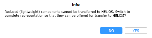 New in HELiOS, you will be asked whether you want to change the representation of these parts from "reduced" to "complete" so that they can be transferred to the HELiOS database, or whether you want to keep the reduction (in which case the corresponding parts will not be transferred).