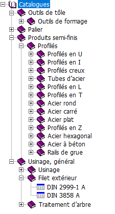DIN. - Sur la droite, dans l'arborescence, désactivez tous les catalogues à l'exception Usinage, général et Éléments de serrage.