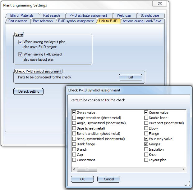 Plant Engineering > Settings > Plant Engineering Settings > Linkt to P+ID