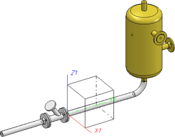 - The straight pipe runs in Y-direction, the vessel stands perpendicular on the XY-plane.