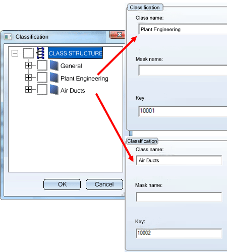 For the parts used for HiCAD Plant Engineering, the class structure needs to have two levels: