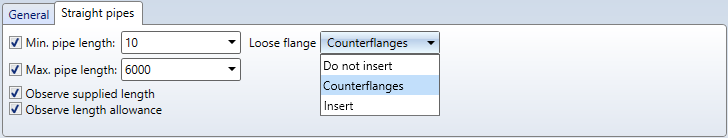 At the bottom of the dialogue there are various settings on the tabs General and Straight pipes: