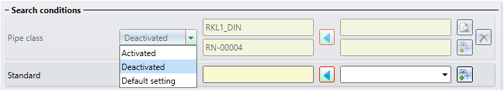 with which you can pick up a search condition from the drawing. The following buttons are also available for pipe classes: