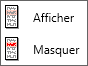 Au moyen du symbole en fin de ligne, vous spécifiez si la ligne doit être affichée ou masquée. Si l'entrée contient d'autres sous-fonctions, celles-ci peuvent également être affichées ou masquées à l'aide du symbole correspondant. Avec le symbole de droite, vous spécifiez si l'entrée doit être affichée ou masquée. Cliquez sur le symbole et faites votre choix :