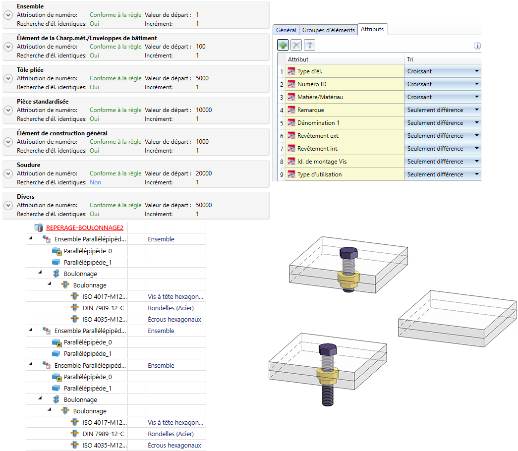 La scène doit être repérée avec une recherche géométrique d'éléments identiques - une fois avec et une fois sans la case Boulonnages cochée.