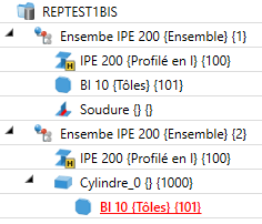 Le résultat du repérage est influencé par l'ordre des groupes d'éléments, dans le sens où chaque élément se verra attribuer au premier groupe d'éléments correspondant (cf. aussi Exemple 1 et Exemple 2). L'ordre de la numérotation du repère dépend lui-même cependant uniquement des critères de tri sélectionnés dans l'onglet Attributs d'élément. Si aucun critère de distinction/de tri n'y est défini, la numérotation du repère suivra alors simplement l'ordre de la structure d'élément.