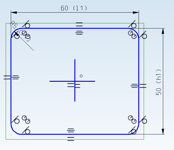 - Créez une nouvelle scène, ajoutez-y un plan d'usinage, puis tracez une esquisse. Paramétrez l’esquisse à l’aide de la polyligne HCM.