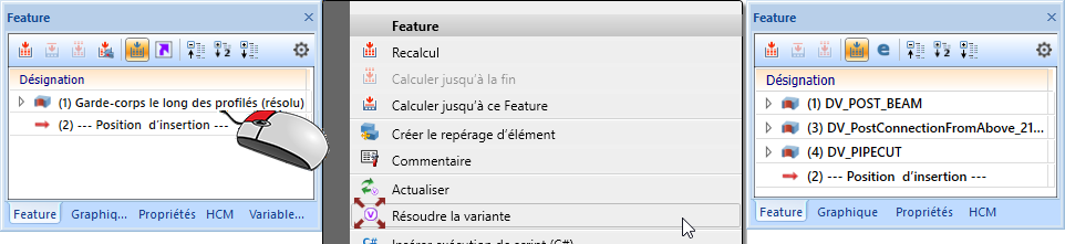 Le type de représentation peut également être modifié par le biais de l'historique de Feature, et ce par un double-clic sur l'entrée Représentation. Cochez, dans la fenêtre qui s'affiche, la case de votre choix et quittez la fenêtre par OK.
