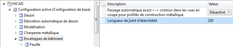 - Dans le Gestionnaire de Configuration, il est possible sous Enveloppes de bâtiment de paramétrer comment les profilés en série avec une représentation exacte et de contour seront représentés dans les vues en coupe.