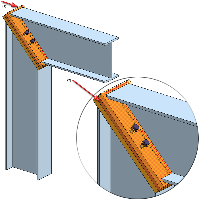 Cette fonction raccorde deux profilés au moyen de deux platines frontales rigides vissées ensemble. Celles-ci peuvent être à fleur l'une par rapport à l'autre aussi bien que dépassées dessus, dessous ou latéralement. Le boulonnage peut être aligné asymétriquement ou symétriquement. Au besoin, les profilés seront automatiquement raccourcis, allongés et/ou coupés en onglet. Par ailleurs, il est également possible d'insérer si désiré directement les soudures ainsi que les tôles de remplissage.
