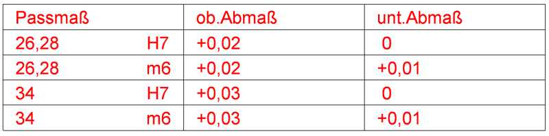 Mit dieser Funktion erzeugen Sie eine Tabelle mit allen Passungen der aktuellen Konstruktion.