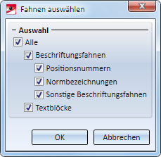 • sonstigen Beschriftungsfahnen (Text mit Hinweislinie ) sowie