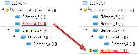 Si, par exemple, dans la structure d'illustration, l'élément 1 est enveloppé, l'enveloppe apparaît alors au même niveau de la structure.