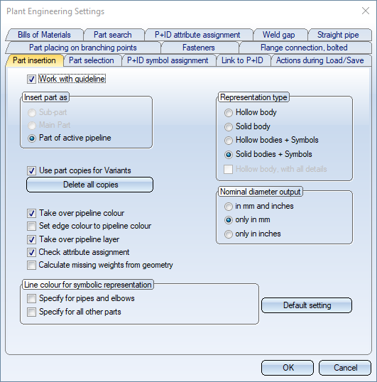 * These settings are not taken into account when inserting pipe parts with the Pipe parts