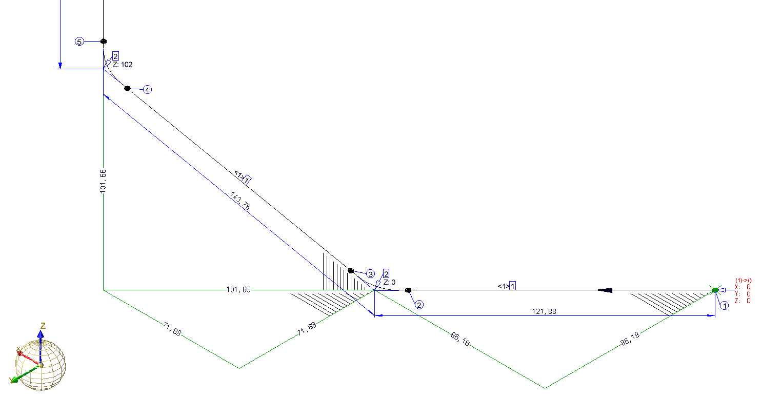 If a straight pipe is not located in one of the three basic coordinates, you can, for the sake of a better spatial representation, insert two rise triangles: