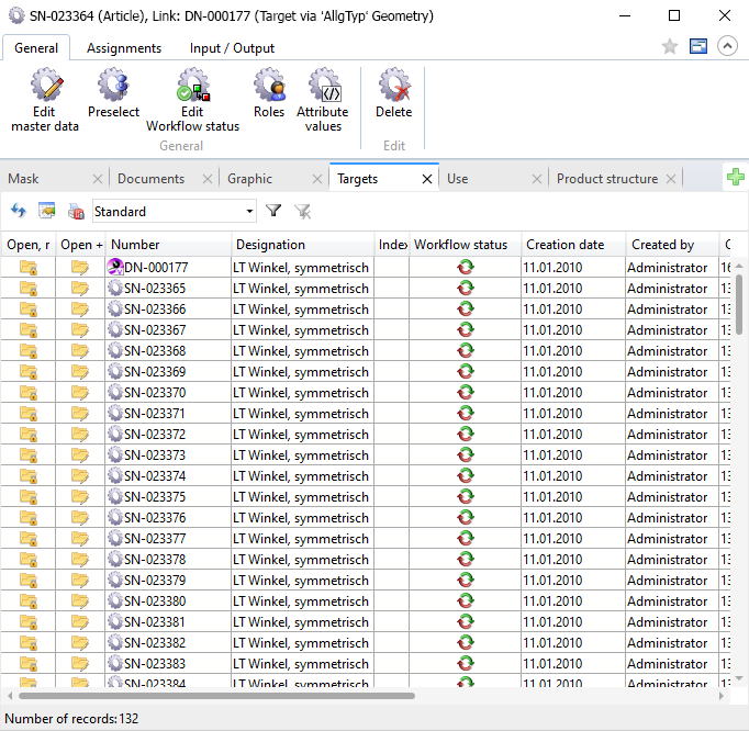 3.)  The different sub-types of a variant, which may differ e.g. in different dimensions according to DIN standards, are stored as individual article masters in the HELiOS database and each of them is linked to the article of the General type as source.