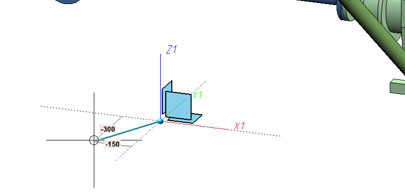 When you call the Create guideline function, a coordinate system tripod is displayed at the cursor and its distance to the origin is additionally represented by auxiliary lines.